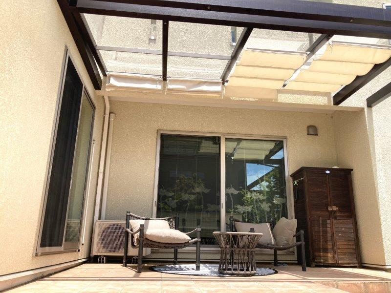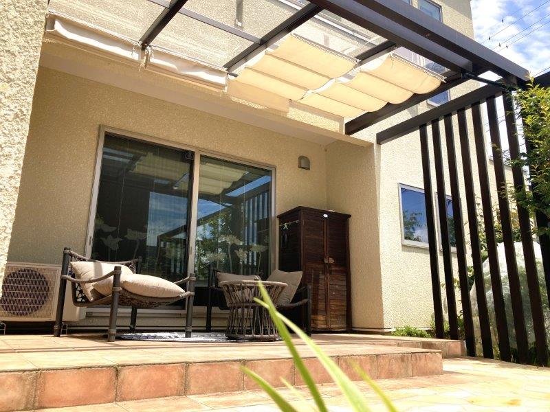 オプションの日除けも設置し、日の光を取り入れたい時はオープンにして開放感を演出。