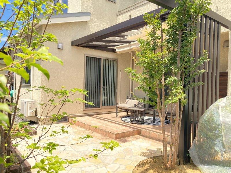 効果的に高木を配置し、プライバシーも守りつつ圧迫感を出さない、抜け感のあるデザインが実現しました!