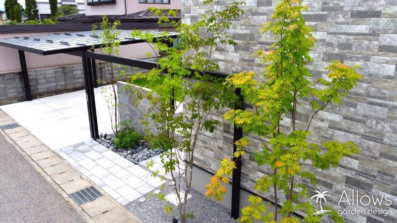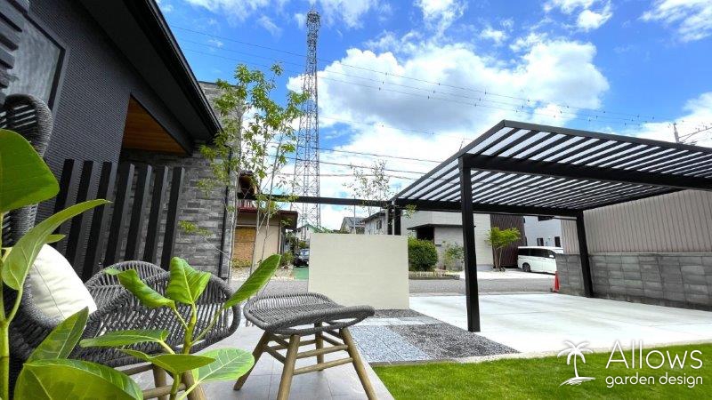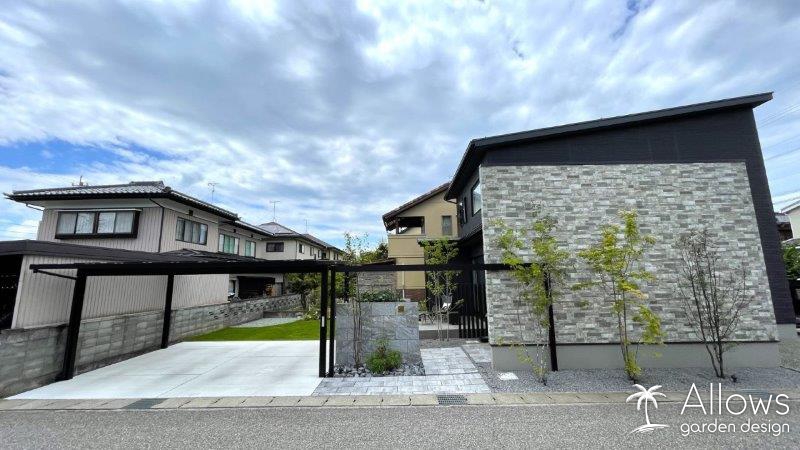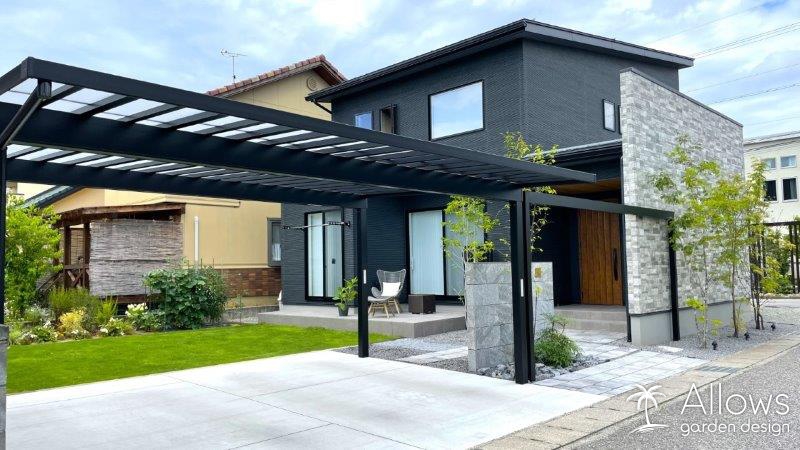 カーポートやデザインゲートといったアルミ部分はブラックで引き締め、住宅と調和させています。