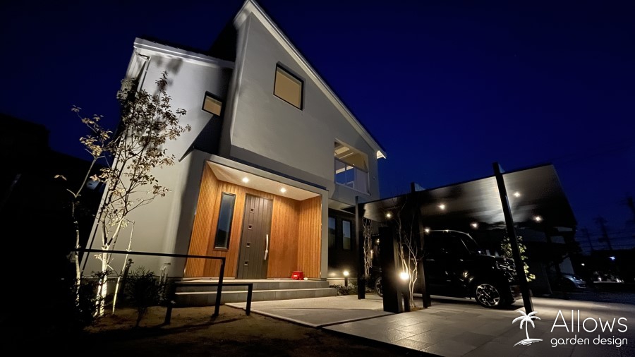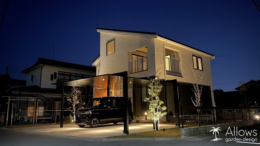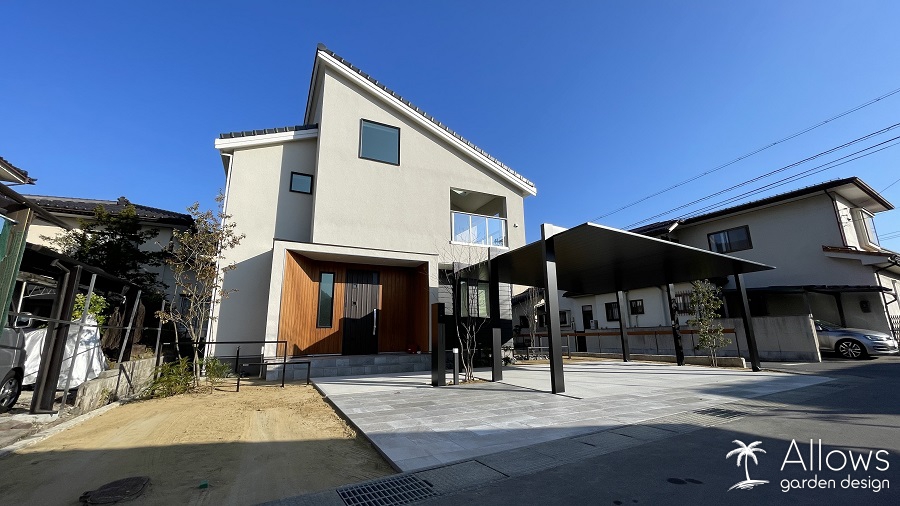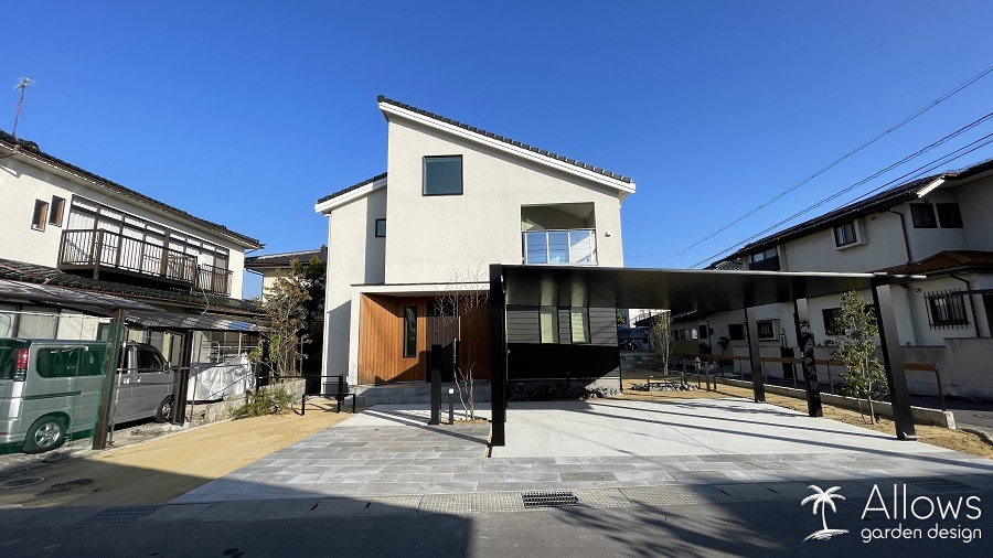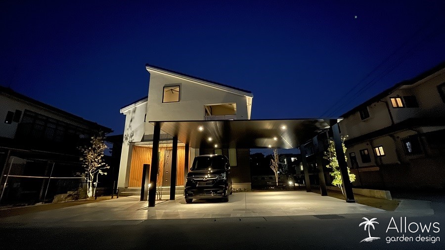 アプローチを駐車スペースまで延ばすことで奥行きが出ますし、高級感もアップします!