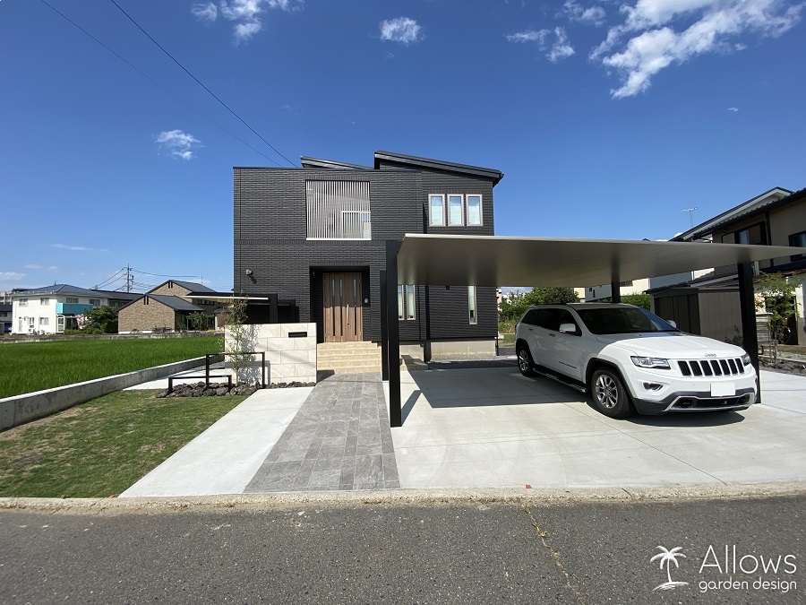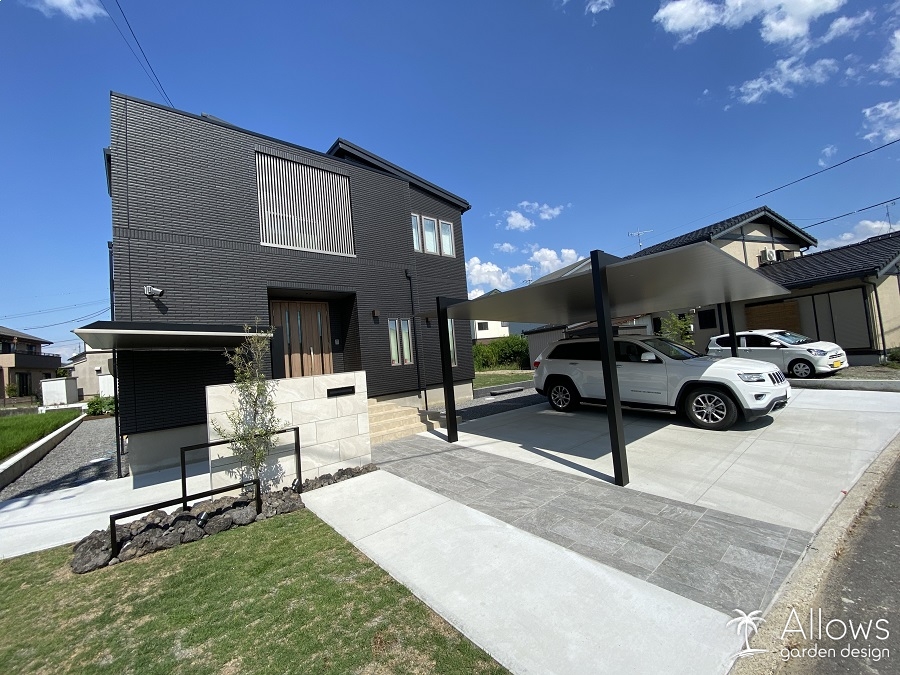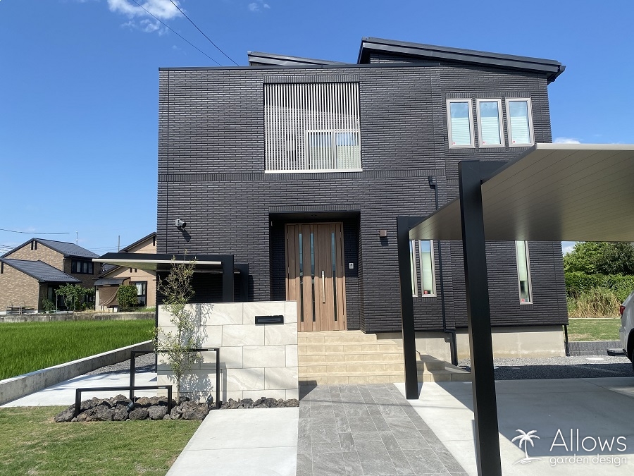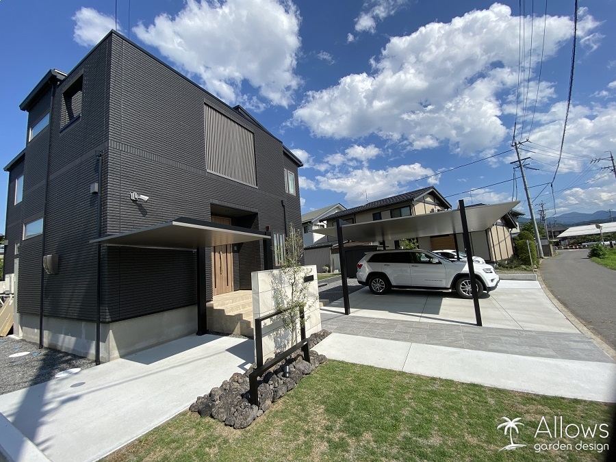 LIXILのSCシリーズをフル活用し、シンプルな美しさを極めた外構になりました。