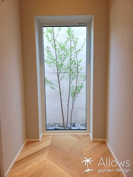 ピクチャーウィンドウには、ヒメシャラを植えました。