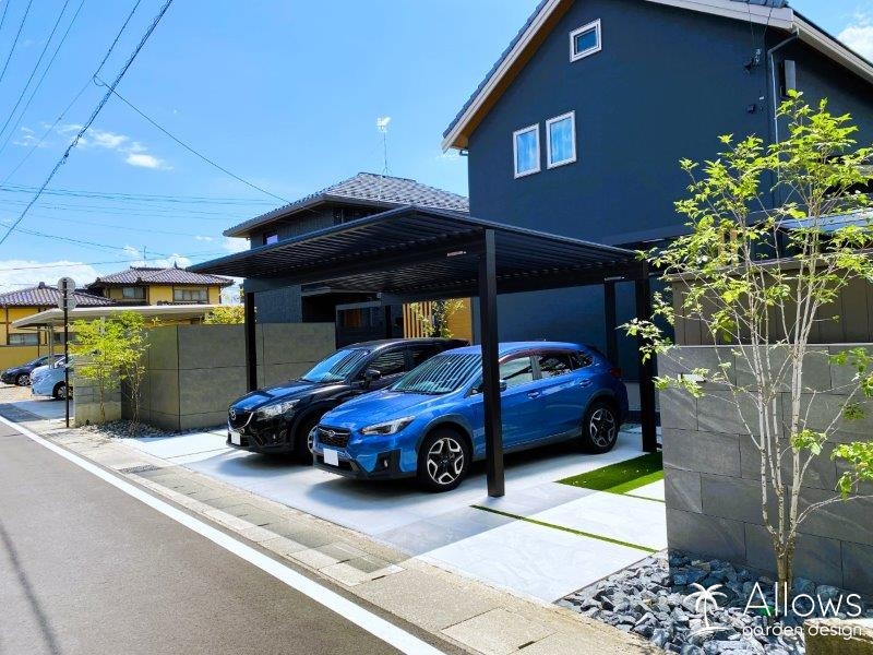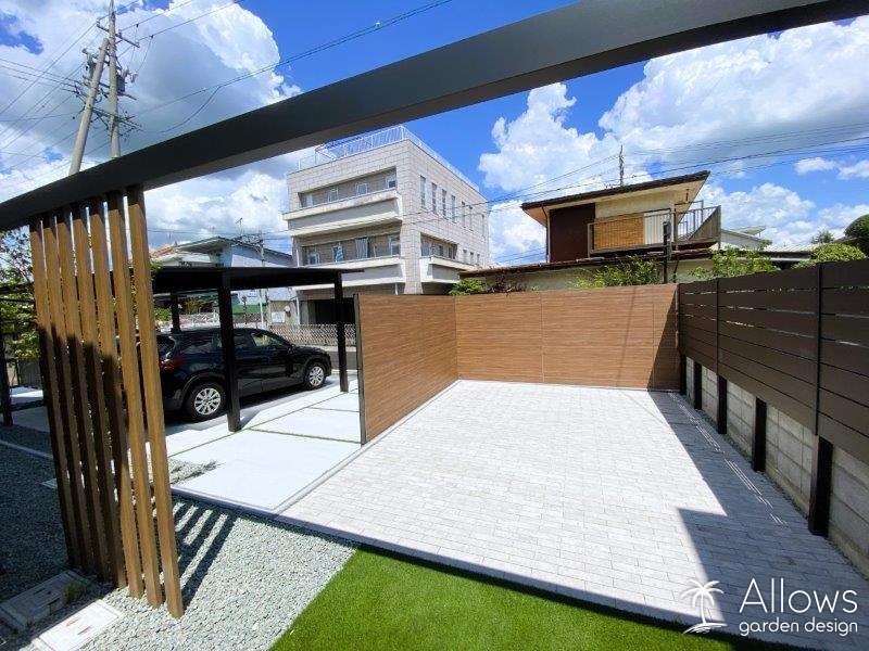 セミクローズ外構・庭・ガーデンの施工例・門・車庫まわりの施工例