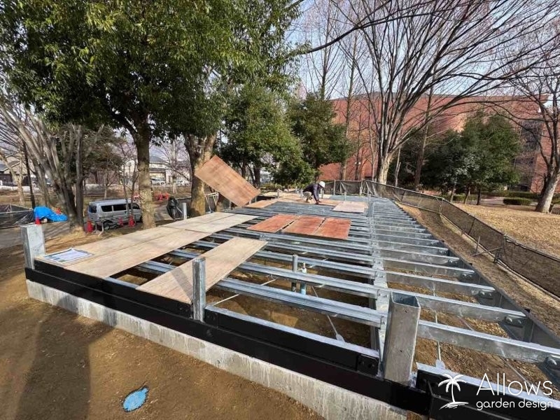 基礎は鉄骨となっております。(この基礎については当社の協力会社様に施工をご依頼いたしました)
