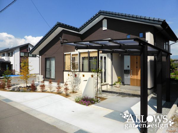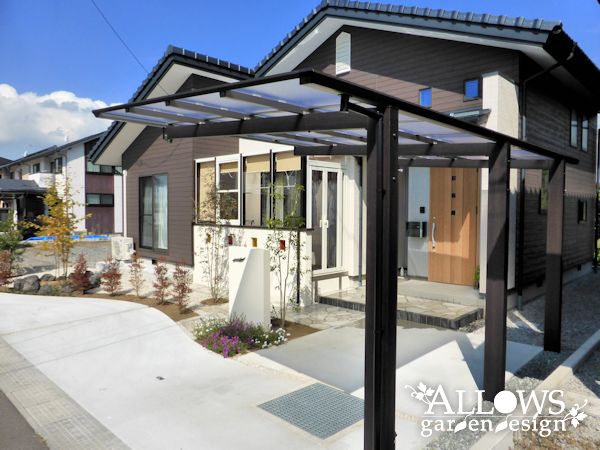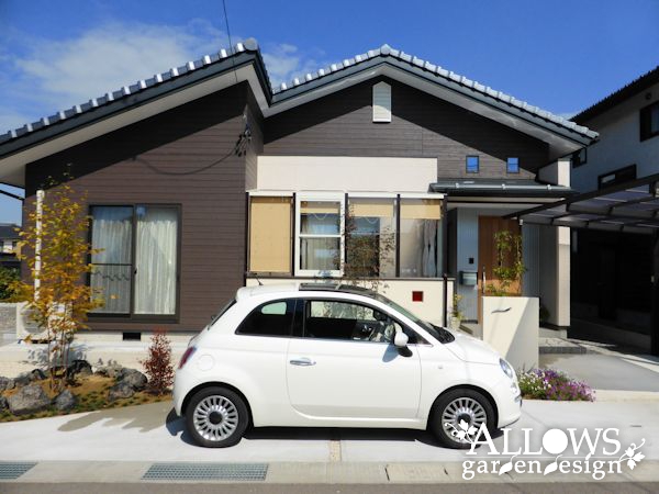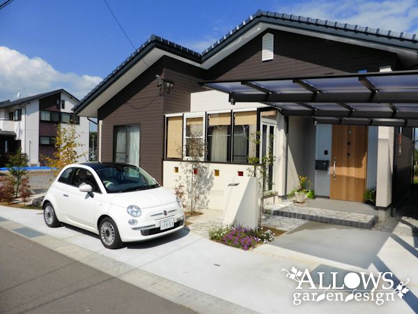オープン外構・庭・ガーデンの施工例・門・車庫まわりの施工例