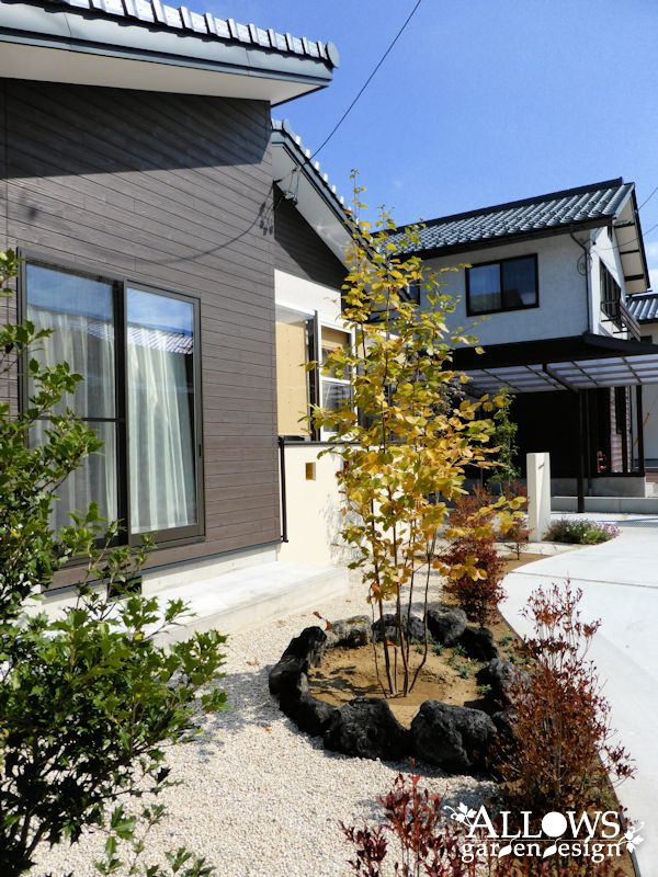 庭のシンボルツリーにはアズキナシを植えて、里山風のイメージで。