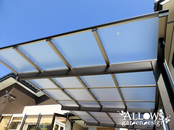 ガーデンルームのロールスクリーンに、柄が入っているものを採用。