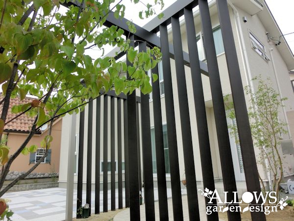 道路からの目隠しと、アプローチのゲートとして設置させていただきました。