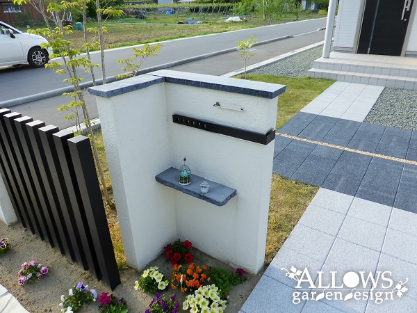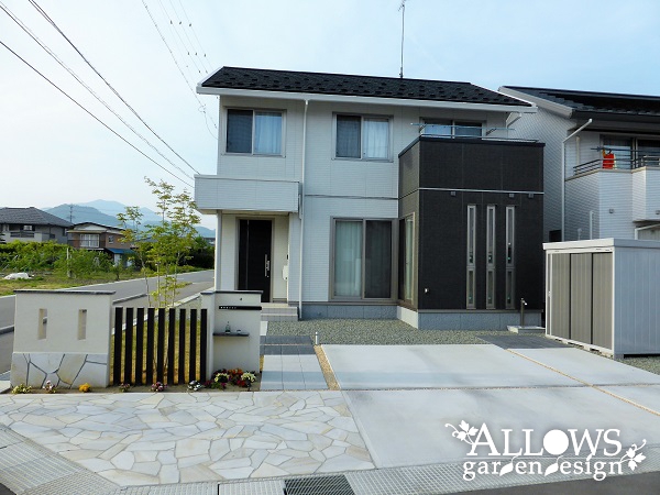 白黒ツートンカラーの住宅に合わせ、エクステリアもスタイリッシュにまとめました。