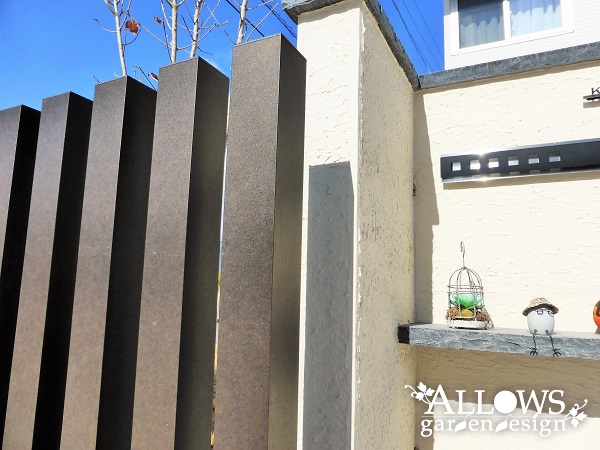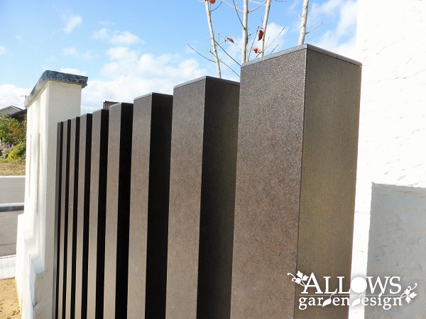 スリットフェンスといえば木目調が主流ですが、今回はメタル調の新色を採用。