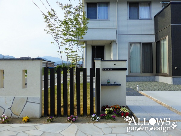 (昨秋に撮影したものなので門柱前の草花がない状態です。現在はもっと良い雰囲気になっています!)