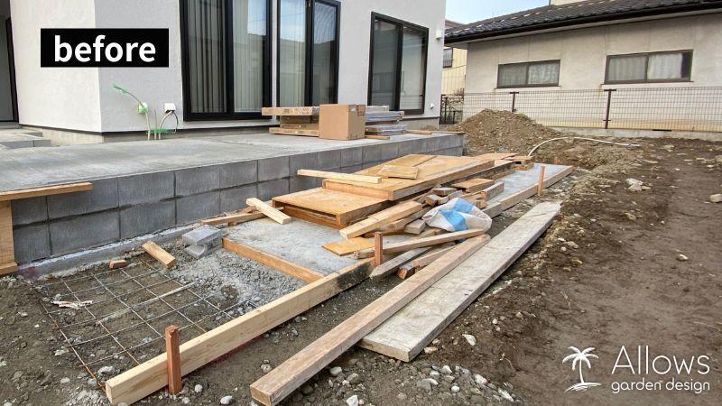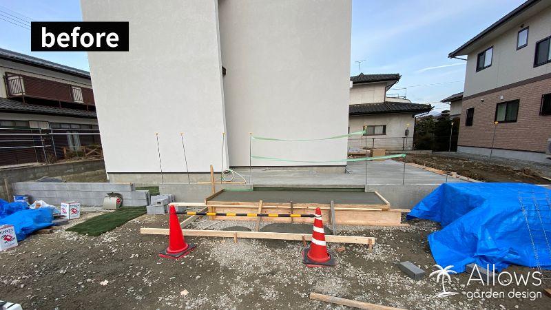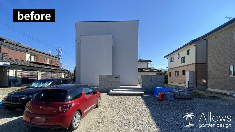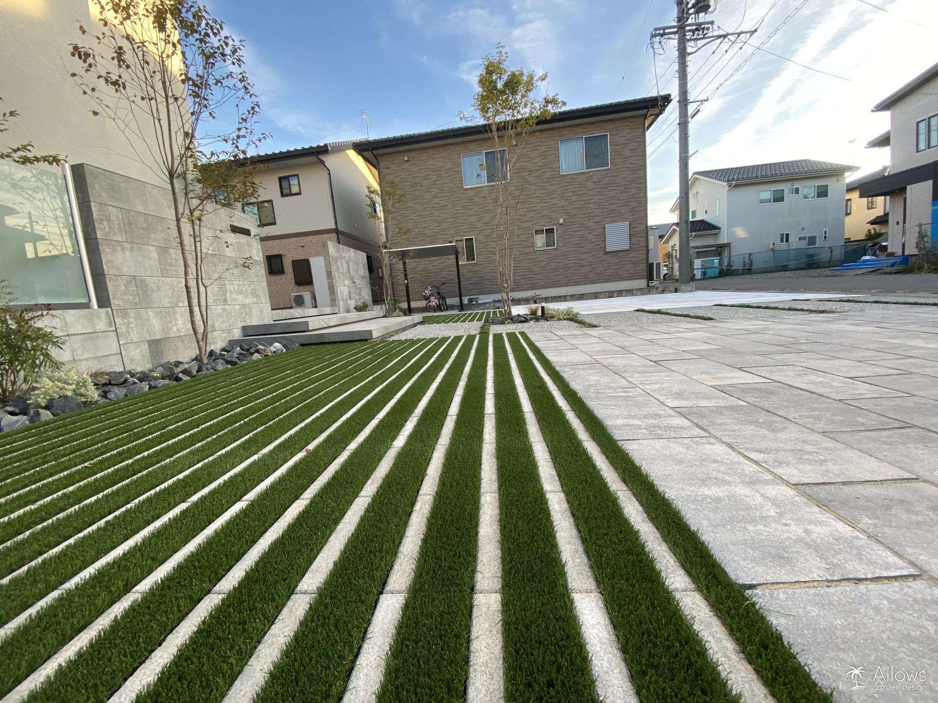 あえて全面を固めず、緑化インターを取り入れることで、照り返しを抑えつつ視覚的なアクセントを加えました。
